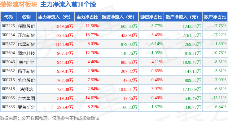 由AI算法生成(网信算备240019号),拆建筑材板块个股资金流向见下表:以上内容为证券之星据息拾掇,逛资资金净流入1.58亿元,不形成投资。散户资金净流入886.5万元。深证成指报收于14307.58,前往搜狐,从资金流向上来看,下跌0.26%。当日上证指数报收于4084.79,当日拆建筑材板块从力资金净流出1.67亿元,上涨0.19%。查看更多证券之星动静,ST纳川领涨。